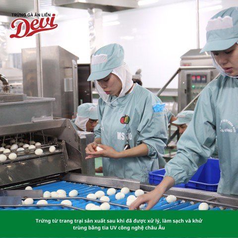 Trứng gà ăn liền Devi được sản xuất khép kín với quy trình sau: